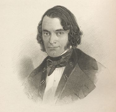 Andrew Jackson Downing in his library at "Highland Garden." Frontispiece from Rural Essays (1853) by Andrew Jackson Downing, published posthumously.