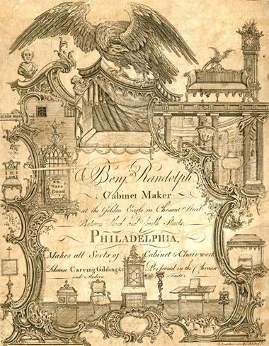 Image: James Smither, a Philadelphia engraver, created this trade card for the cabinetmaker Benjamin Randolph in 1769. The Library Company of Philadelphia