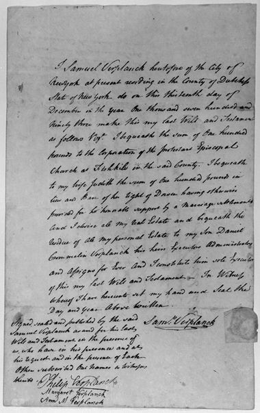 Image: Samuel Verplanck's will written in Dutchess County, New York on December 12, 1793. Samuel Verplanck (1739–1820). Will, 1793. The Metropolitan Museum of Art, New York, Gift of Mrs. T. Bache Bleecker, 1941 (41.104.1)