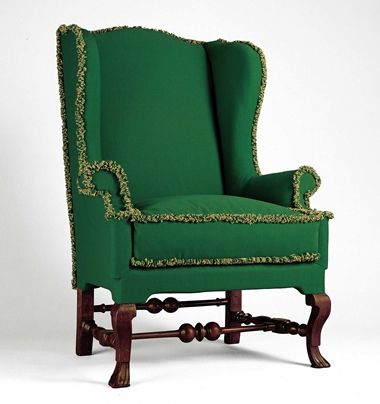 The fully upholstered easy chair was introduced to the colonies in the early eighteenth century, with initial models emerging from Boston. As textiles were costly and upholstering required considerable labor, easy chairs were expensive and accordingly found exclusively in wealthy homes. They were usually placed in the best bed chamber rather than the parlor, with upholstery fabric chosen to match the bed hangings. Easy chairs were often associated with the elderly and the infirm, to whom the cushions and wings provided comfort and warmth. Furthermore, the seat of many easy chairs were fitted with a ceramic or pewter bowl to allow their owners to use them as commodes.