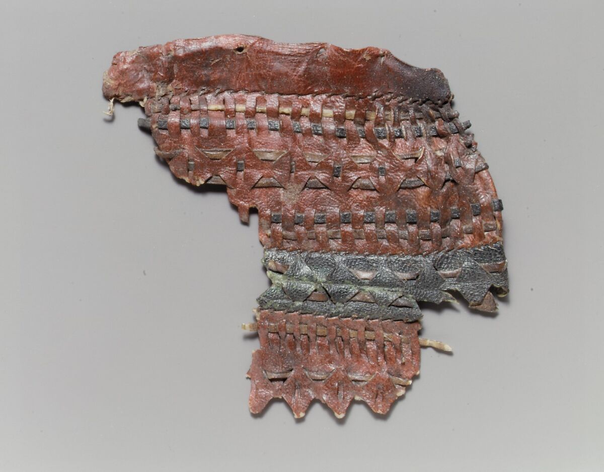 - Medium: Leather (cattle hide), dye (red madder)