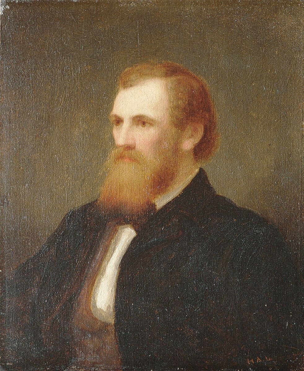 Best known as a portraitist, Loop was a popular choice among artists who were newly elected as associate Academicians to the National Academy of Design to satisfy the requirement that they provide portraits of themselves. The realist sculptor John Quincy Adams Ward (1830-1910) was elected an associate of the Academy in 1862 and a full Academician in 1863, later serving as president of the organization in 1873-74, the first sculptor to do so. This cabinet-sized likeness on panel is presumably a study for or reduced replica after Ward’s presentation portrait on canvas (19 7/8 x 15 7/8 in.) by Loop in the National Academy’s collection. Both depict the artist in a three-quarter bust-length pose against a monochromatic background. Ward has a full red beard and moustache and appears in contemporary dress—white shirt, brown bow tie and vest, and a black coat. The Metropolitan’s version descended in the family of Eliza Ward Thomas, Ward’s eldest sister, and remains in its original frame.