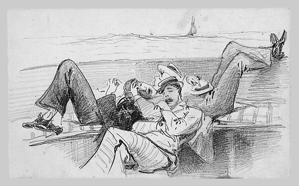 Sargent drew this study of friends sleeping on a boat at Newport, Rhode Island, during his first visit to the United States in 1876.