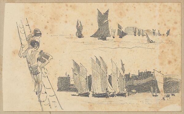 • Title: Two Men in Ship's Rigging, Two Scenes with Sailboats (from Scrapbook)
