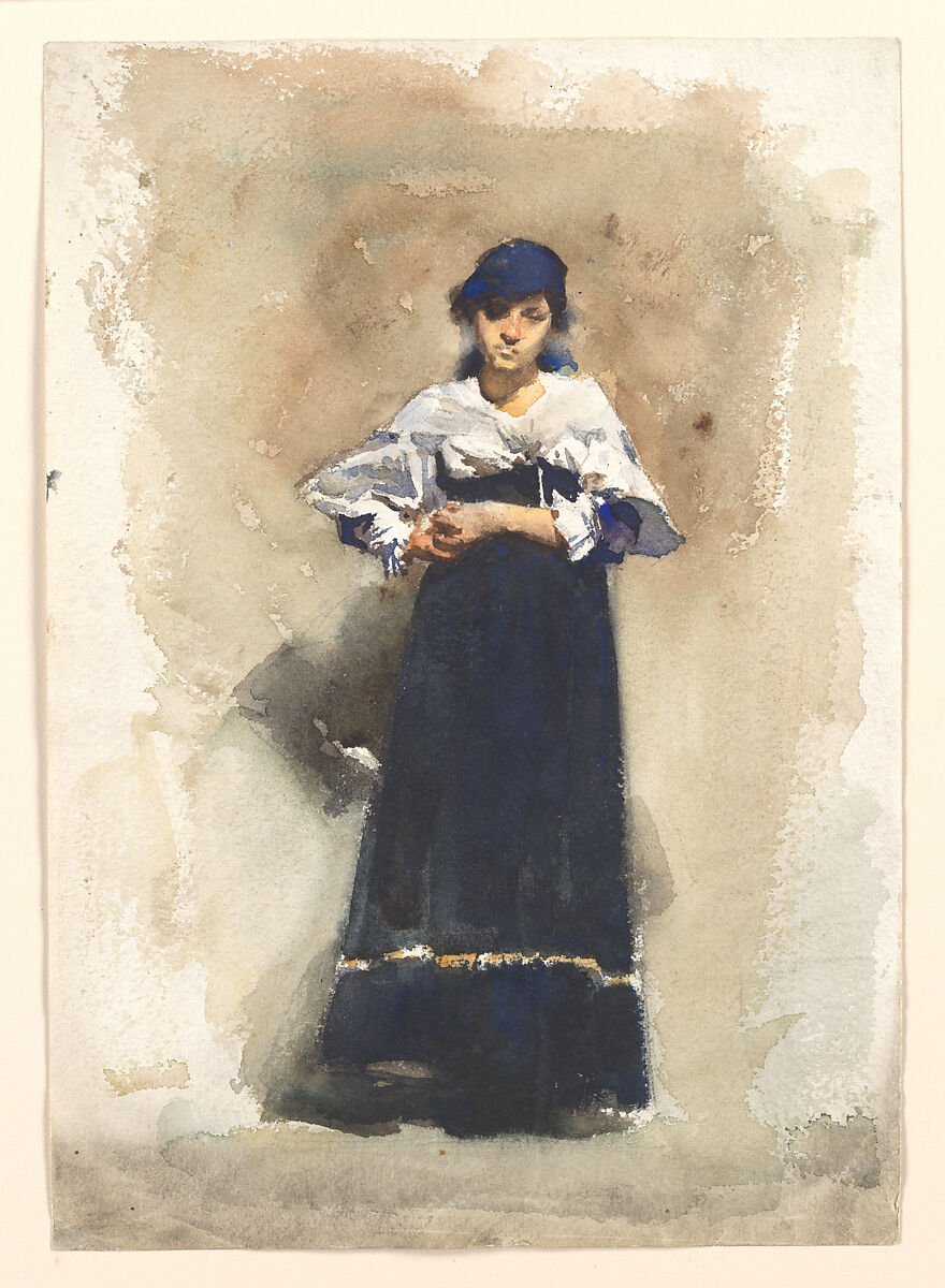 Like many of his contemporaries, Sargent was attracted to Venice and visited the city frequently throughout his life. This watercolor of a young woman in Venetian peasant costume relates to his genre paintings of the period but also reveals his longstanding interest in the exotic.