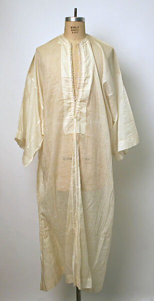 The type of garment referred to as kaftan was known in Persia and the Ottoman Empire before arriving in Morocco, probably in the 16th century. Kaftans made of elegant materials such as silk brocade or velvet were reserved for special occasions. This thin, diaphanous garment is known as a farasia (sometimes spelled farajiya) and was worn over another kaftan, typically by high ranking members of the Moroccan elite.