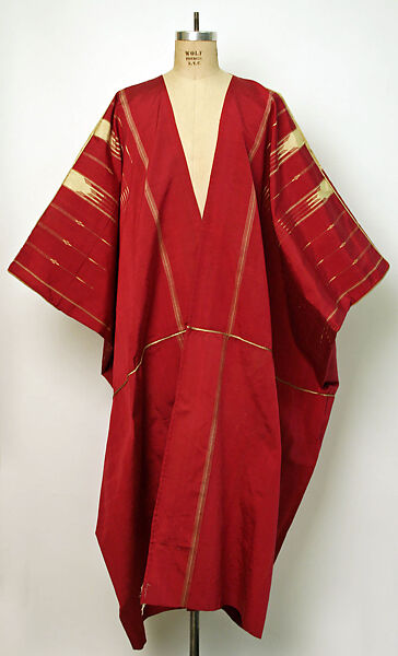 The abaya (cloak) is a unisex type of garment, perhaps the most characteristic garment in the Arab world. Wealthy Bedouin and people living in cities and villages commissioned ornate silk abayas (cloaks) from workshops in Aleppo and Damascus for weddings and ceremonies or as diplomatic gifts for high-ranking officials. Sophisticated abayas often feature special motifs centered on the wearer’s back, which most likely convey symbolic meanings, such as protective powers, or perhaps reflect the wearer’s socio-religious identity. Syrian abayas were worn by different social groups in Syria and beyond and were considered one of the most characteristic and fashionable garments of Arab dress.