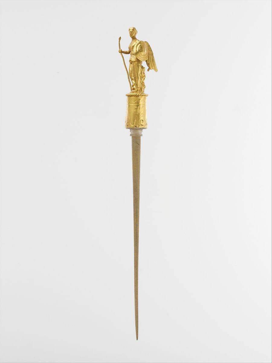 - Title:Gold head of a pin with the figure of Nike (Victory)