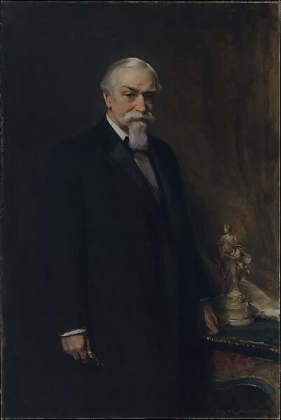 The New York merchant George A. Hearn (1853–1913) was an important benefactor of The Metropolitan Museum of Art during the last twenty years of his life. After 1906, he established a fund for the purchase of paintings by living American artists and donated many American paintings as well. In 1911, he established a second fund for the purchase of American paintings in the memory of his son, Arthur Hoppock Hearn. On June 19, 1911, the Museum's trustees, in recognition of Hearn's generosity, asked him to sit for a portrait by an artist of his choosing. It was not until the spring of 1913, however, that Hearn contacted Wiles to paint the portrait. When Hearn died on December 1, 1913, the portrait was not yet finished. Apparently, Wiles ultimately had to work extensively from photographs to finish the portrait. On April 14, 1914, Wiles reported that the portrait would be finished "in a few days." The picture was approved by Hearn's family and accepted by the Museum on May 18.