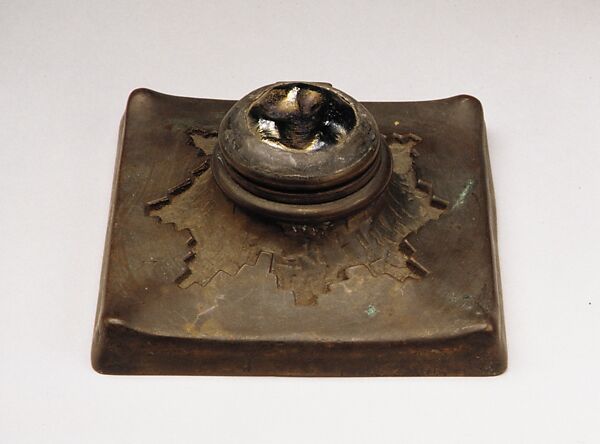 The surface of this inkwell may have been intended for a glass mosaic decoration. It descended in the family of George Scharffenberger, the accountant/bookkeeper for Tiffany Studios.
