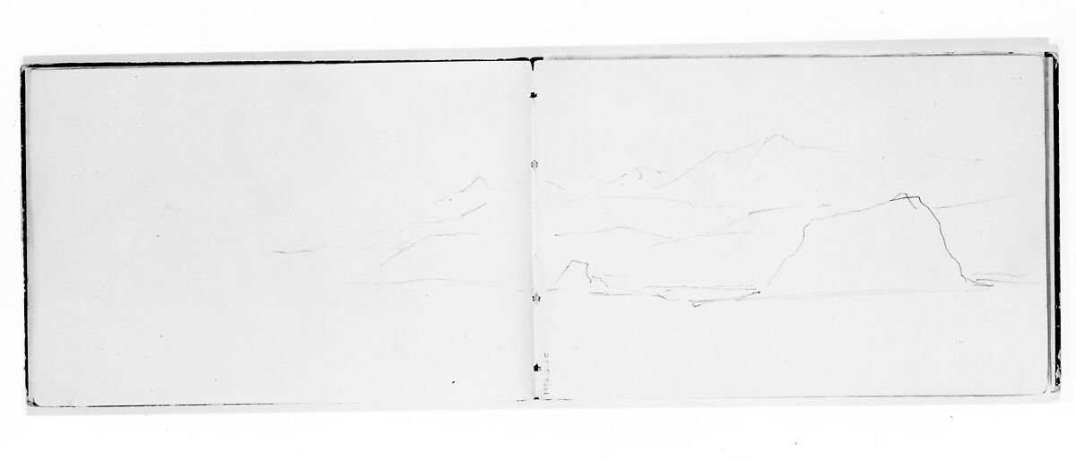 This sketchbook contains fifty-one drawings in graphite and ink, primarily of Pacific Northwest landscape and marine subjects. The addition to the Museum’s collection of this and one other sketchbook (1992.2.1) of New England and Pennsylvania landscape and marine subjects by Richards virtually completes a representation of the range of the artist’s graphic achievement. The books are remarkable for both highly finished compositions and for pages of rapid notes probably taken during strolls through the countryside. The pages testify to Richard’s tireless pleasure in observing nature, to the sketchbooks utility as a rehearsal place for his hand, and to the vivid impressions he could produce with the simplest of means. Not least of all, they offer a key understanding to the artist’s uncanny facility in his better known paintings and watercolors.