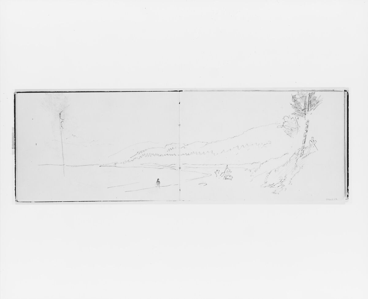 - Title:Bay, Hill, and Figure on Shore (from Sketchbook X)