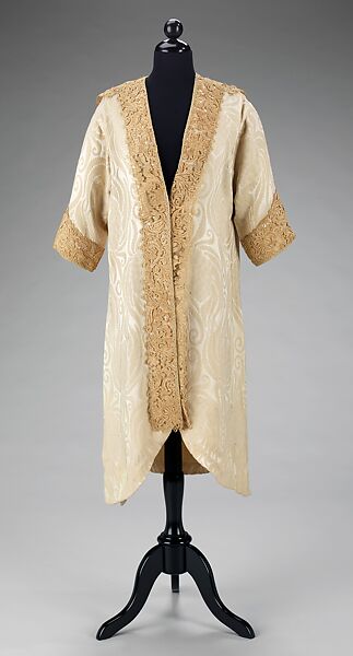 Rita de Acosta Lydig (1880-1929), a noted beauty and style icon of the early twentieth century, owned this garment. A great admirer and collector of lace, de Acosta Lydig's garments and accessories often incorporated insertions or trims of antique lace, sometimes taken from her own collection. De Acosta Lydig favored dramatic and slightly idiosyncratic styles in dressing, including dhoti-style culottes, and long, unfitted garments that emphasized the panels of lace trim rather than the body of of the woman who wore them, such as this example.