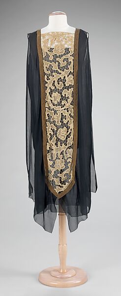 Rita de Acosta Lydig (1880-1929), a noted beauty and style icon of the early twentieth century, owned this garment. A great admirer and collector of lace, de Acosta Lydig's garments and accessories often incorporated insertions or trims of antique lace, sometimes taken from her own collection. De Acosta Lydig favored dramatic and slightly idiosyncratic garments when dressing, some of which she may have designed herself. Long, unfitted garments that emphasized the panels of lace trim rather than the body of the woman who wore them, such as this example, were a staple of her wardrobe.