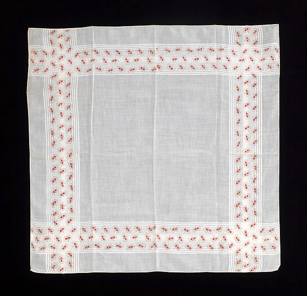 This well-made and handsomely designed men's handkerchief with its elaborate patterning and use of bright color displays the high sense of style of its owner.
