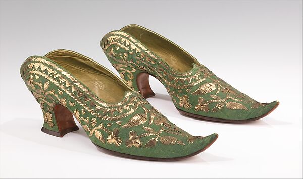 Pietro Yantorny (1874-1936), the self-proclaimed "most expensive shoemaker in the world", was a consummate craftsman utterly devoted to the art of shoemaking. Yantorny sought to create the most perfectly crafted shoes possible for a select and exclusive clientele of the most perfectly dressed people. This pair of mules was made for Rita de Acosta Lydig (1880-1927), an avid collector of lace and antique textiles. Lydig dressed in a strongly personal style, often displaying Orientalist tastes in her attire. These mules are inspired by the Turkish babouche; the consequent allusion to the harem was especially appropriate to a boudoir slipper, although it is possible that Lydig wore them with one of her many harem dresses. The fabric is identical to that used in Near Eastern footwear, and was probably either collected by Lydig or embroidered to order.