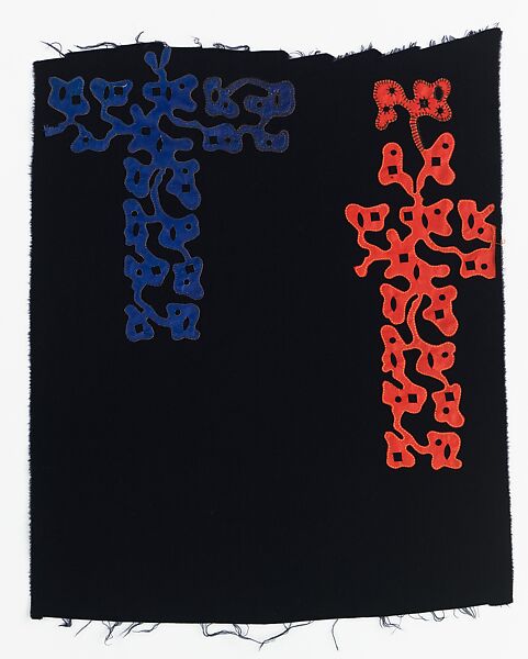 This object is from a collection of sample embroideries, which was originally owned by Morris de Camp Crawford, editor of Women's Wear Daily, who collected objects which told the story of fashion and fabric history. Included in this collection was a group of textiles which illustrated what American and French designers and manufacturers were using. According to Crawford's book The Ways of Fashion, the work of Polish artist Sarah Lipska (1882-1973) was represented in this collection. Lipska is an enigmatic figure, who is known to have worked with Leon Bakst as a set and costume designer for the Ballets Russes, and later in the 1920s as a fashion designer in Paris at 4 rue Belloni, and finally as a sculptor. Extant examples of her work are rare. Although only a few pieces in the Brooklyn Museum collection bear a label or a signature, others bear hallmarks of her work, such as a distinctive form of whip stitching on appliqué work, unusual abstract motifs, and Cubist-inspired patterns.