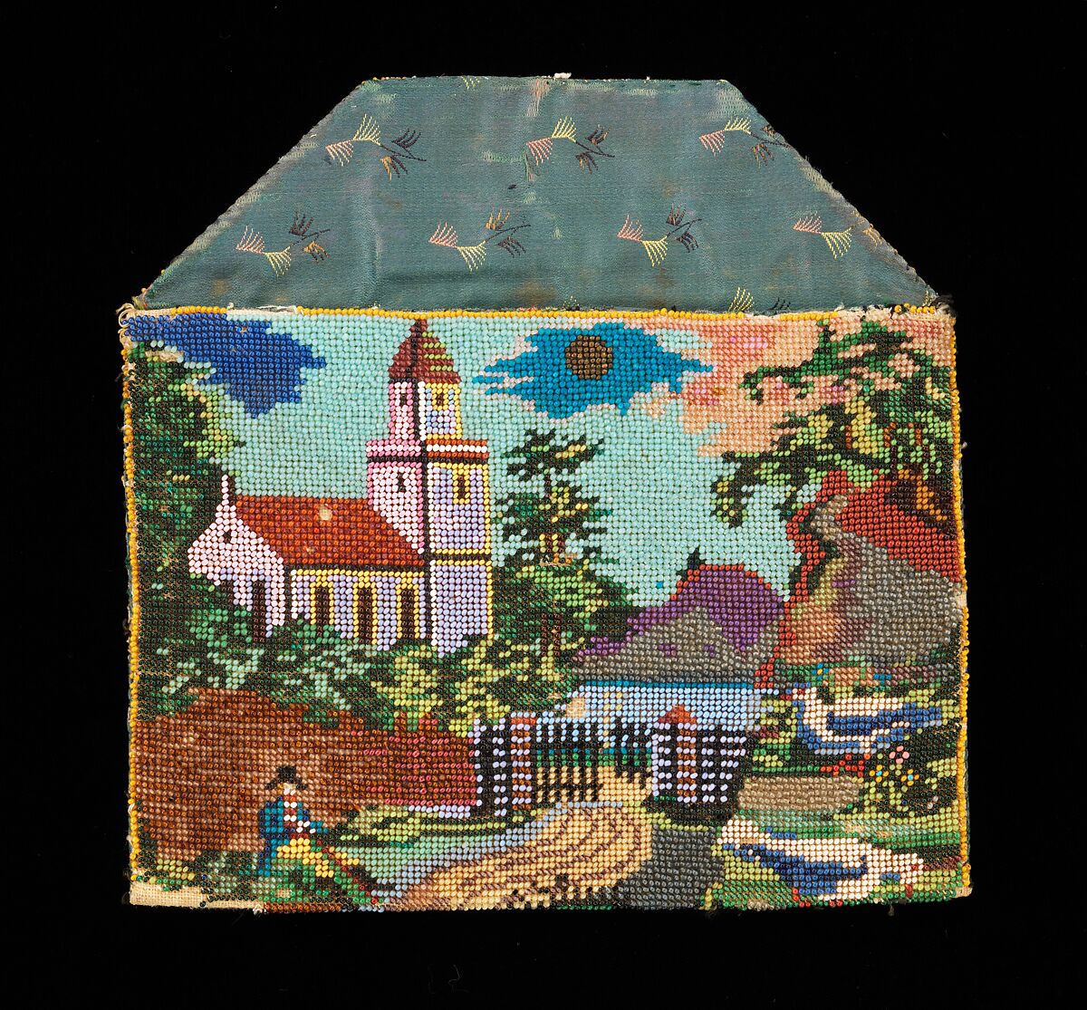 Mrs. Morrow collected Mexican beadwork, along with other examples of colonial and native arts, to decorate their country home in Cuernavaca in order to promote a more peaceful image of that country through its works. The Morrows sought to overturn the perception of post-revolutionary Mexico as a violent and unstable nation by highlighting the richness and diversity of its colonial, folk, and contemporary art. Glass beads were originally imported to New Spain (Mexico) from Italian and Asian sources via Spanish colonial trade routes. By the early part of the nineteenth century, Spain had suffered the loss of almost all of its colonies and with the succeeding establishment of free trade British ships undertook the importation of beads to Mexico. Many of the design influences on the bags and cases in the collection came from Europe; patterns for beadwork designs came from contemporary fashion publications such as "La Dama Elegante."