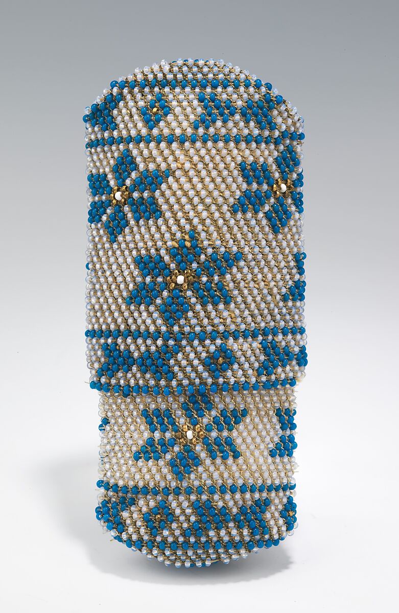 Mrs. Morrow collected Mexican beadwork, along with other examples of colonial and native arts, to decorate their country home in Cuernavaca in order to promote a more peaceful image of that country through its works. The Morrows sought to overturn the perception of post-revolutionary Mexico as a violent and unstable nation by highlighting the richness and diversity of its colonial, folk, and contemporary art. Glass beads were originally imported to New Spain (Mexico) from Italian and Asian sources via Spanish colonial trade routes. By the early part of the nineteenth century, Spain had suffered the loss of almost all of its colonies and with the succeeding establishment of free trade British ships undertook the importation of beads to Mexico. Many of the design influences on the bags and cases in the collection came from Europe; patterns for beadwork designs came from contemporary fashion publications such as "La Dama Elegante."