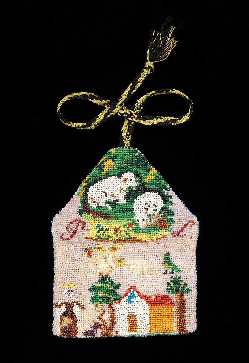 The two detailed vignettes seen here each contain a clear sense of individuation in the depiction of their female figures. The purse is part of the Mexican beadwork collection of over 600 pieces assembled by Elizabeth Morrow (1873-1955), mother of writer Anne Morrow Lindbergh, the wife of renowned aviator Charles Lindbergh. Morrow collected the objects between 1927 and 1930, when her husband, Dwight Morrow, Sr., served as U.S. ambassador to Mexico. She lent the collection to the Brooklyn Museum in 1938 and upon her death, her children donated it. A collection of 155 pieces of Mexican ceramics and other decorative arts were given to Amherst College, her husband's alma mater.