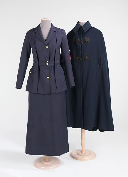 The language of the Naval Reserve Act of 1916 stated that among those eligible to serve were "all persons who may be capable of performing special useful service for coastal defense." That lack of specificity allowed for the enlistment of women, who began to join the service in 1917. This naval reserve ensemble was worn by a Yeoman (F)--Yeoman (Female)--an enlisted rank popularly called Yeomanette. The rank predominantly involved secretarial and clerical work but could also include other duties such as recruiting, translating and designing. The last Yeoman (F) was reportedly discharged in 1921. It is likely that this uniform and that of a member of the American Legion (2009.300.220a–d) were worn by the donor, Mrs. A. E. Laurencelle (née Ethel Redmond).