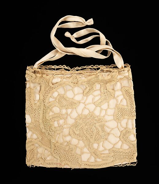 First established in the 1890s by the four Callot sisters as a lingerie and lace business, Callot Soeurs evolved into a premier dressmaking house in the early years of the 20th century. Madame Gerber, the eldest Callot sister, served as the primary designer for the house. Many accessories from Callot Soeurs in the Brooklyn Museum collections incorporate a signature element: antique lace trimming. Rita de Acosta Lydig (1880-1929), a noted beauty and style icon of the early twentieth century, owned this handbag attributed to Callot Soeurs. A great admirer and collector of lace, de Acosta Lydig patronized Callot Soeurs in appreciation of Madame Gerber's similar affinity and skillful use of antique textiles. She may have provided lace from her own collection to be made up into garments and accessories by Madame Gerber.