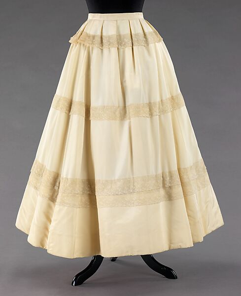 This petticoat is a revival rendition of late 19th century style petticoats, made specifically for one of Mainbocher's clients, Millicent Rogers. Working closely with the designer, her interest in history and taste for period styles most likely inspired this piece.