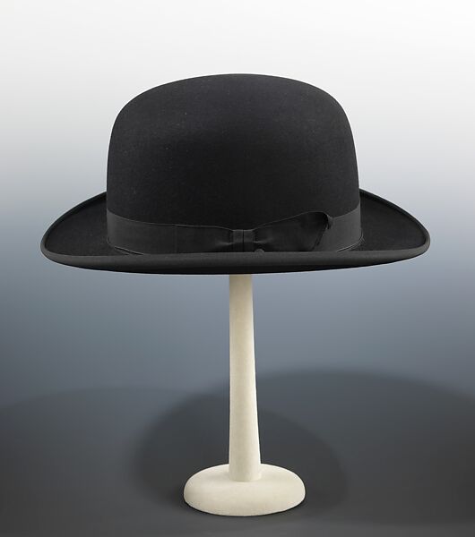 A classic style of men's headwear in the 20th century, the bowler first came into fashion in the 1850s. Like the top hat, the bowler had working-class origins. Layers of shellac created a helmet-like hat for rural gamekeepers and the close fit ensured it would not blow off in windy conditions. A mid-19th century prototype of the style was made by Thomas and William Bowler, hat makers in Southwark, England and the widespread success of their design made their family name synonymous with the style. The bowler is also known as a "derby" based on its association with horseracing in England.