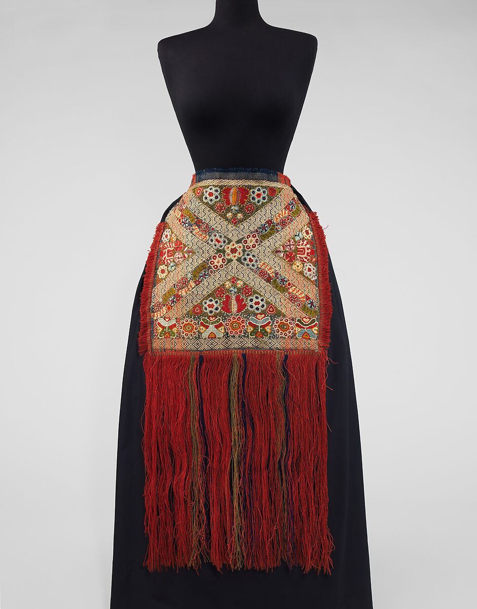 The apron was collected by Stewart Culin (1858-1929) during a collection expedition in 1920. Culin was the Brooklyn Museum's first Curator of Ethnology, serving from 1903 to 1929. Possessing an insatiable curiosity and appetite for collecting objects of all kinds, Culin conducted over twenty worldwide collecting expeditions between 1901 and 1928. The trips covered American Indian territories, New England, Asia, India, Great Britain, and all of Eastern and Western Europe. The seven expeditions between 1917 and 1928 were specifically focused on collecting regional textiles and costumes from Eastern and Western Europe and, to a lesser extent, New England. Culin's goals for these trips were not just to expand the Museum's holdings, but also to preserve their cultural contexts. He did so through amassing photographs, notebooks, and ephemera which documented the social, commercial, and cultural circumstances surrounding their acquisition. His collecting philosophy embraced both rare and high-quality pieces as well as those which represented daily life or were of particular social or historical interest.