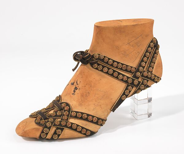 This object comes from a group of over seventy-five shoe prototypes designed in Paris in 1939 by Steven Arpad. Aside from the lines of leather accessories and jewelry he produced under his own name in the 1940s, Arpad seems to have worked mostly anonymously. The prototypes are accompanied by an extensive archive of original sketches which has made it possible to identify uncredited shoe designs for Balenciaga and Delman as Arpad's work. Containing some of the most creative, unique, and unusual examples of footwear design in the collection, the museum's holdings appear to be the only documented body of the work of this extraordinary designer.