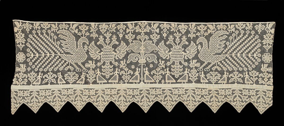 This object is from the collection of Natalia de Shabelsky (1841-1905), a Russian noblewoman compelled to preserve what she perceived as the vanishing folk art traditions of her native country. Traveling extensively throughout Great Russia, she collected many fine examples of textile art of the wealthy peasant class. From the 1870s until moving to France in 1902, Shabelsky amassed a large collection of intricately embroidered hand-woven household textiles and opulent festival garments with rich decoration and elaborate motifs. The Brooklyn Museum holdings include many fine examples including the majority of the garments. Portions of Shabelsky's collection are also housed at the Museum of Fine Arts, Boston, the Cleveland Art Museum, and the Russian Museum of Ethnography in St. Petersburg.
