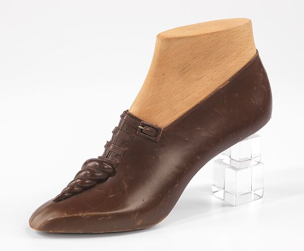 This object comes from a group of over seventy-five shoe prototypes designed in Paris in 1939 by Steven Arpad. Aside from the lines of leather accessories and jewelry he produced under his own name in the 1940s, Arpad seems to have worked mostly anonymously. The prototypes are accompanied by an extensive archive of original sketches which has made it possible to identify uncredited shoe designs for Balenciaga and Delman as Arpad's work. Containing some of the most creative, unique, and unusual examples of footwear design in the collection, the museum's holdings appear to be the only documented body of the work of this extraordinary designer.