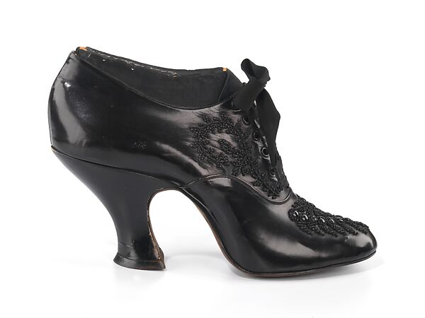 This shoe entered the collection as a donation from its manufacturer, the Brooklyn-based Charles Strohbeck. The extremely exaggerated style and intact wooden form indicate that the shoe was probably an exhibition piece executed to show capabilities of the manufacturer, rather than a representative production sample. During the heyday of American shoe manufacturing (roughly 1870 to 1930) Brooklyn was so well known for its manufacturers of high fashion shoes that the term "Brooklyn Shoes" was used generically in the industry to describe the category.