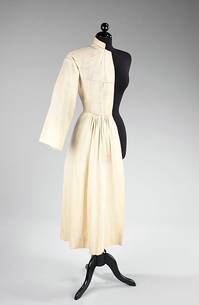 The Charles James holdings include an extraordinary collection of sewn muslins and flat patterns that represent James' design process from original concept to the finished garment. At his behest, three of his most devoted clients, Millicent Huttleston Rogers, Mrs. John (Dominique) de Menil, and Mrs. William Randolph (Austine) Hearst, Jr., along with several others, donated this supporting material along with the actual garments. In some cases, the garments are accompanied by materials that represent all of James' design phases-two flat patterns (paper and muslin), and two sewn muslins (half and full).