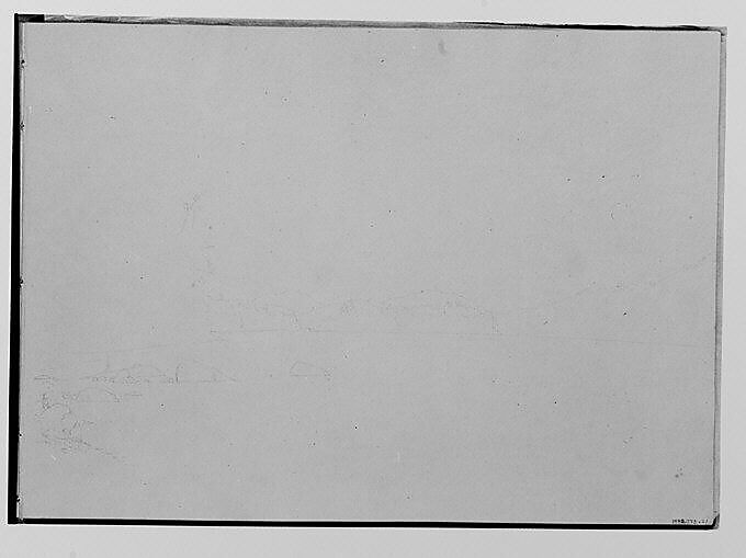 Hinckley painted landscapes chiefly as a background to his portraits of wild and domesticated animals. This sketchbook (1992.373.1 recto–.27) contains thirty-four drawings in graphite and watercolor and appears to have been filled during a tour that the artist probably began near the Delaware Water Gap and extended north into the Catskill Mountains and Adirondacks of New York State. Few of the drawings in this book, however, can be linked to Hinckley’s known paintings after 1864, and the majority of them represent not merely selected motifs, but discrete compositions that often assume the character of engraved vignettes.