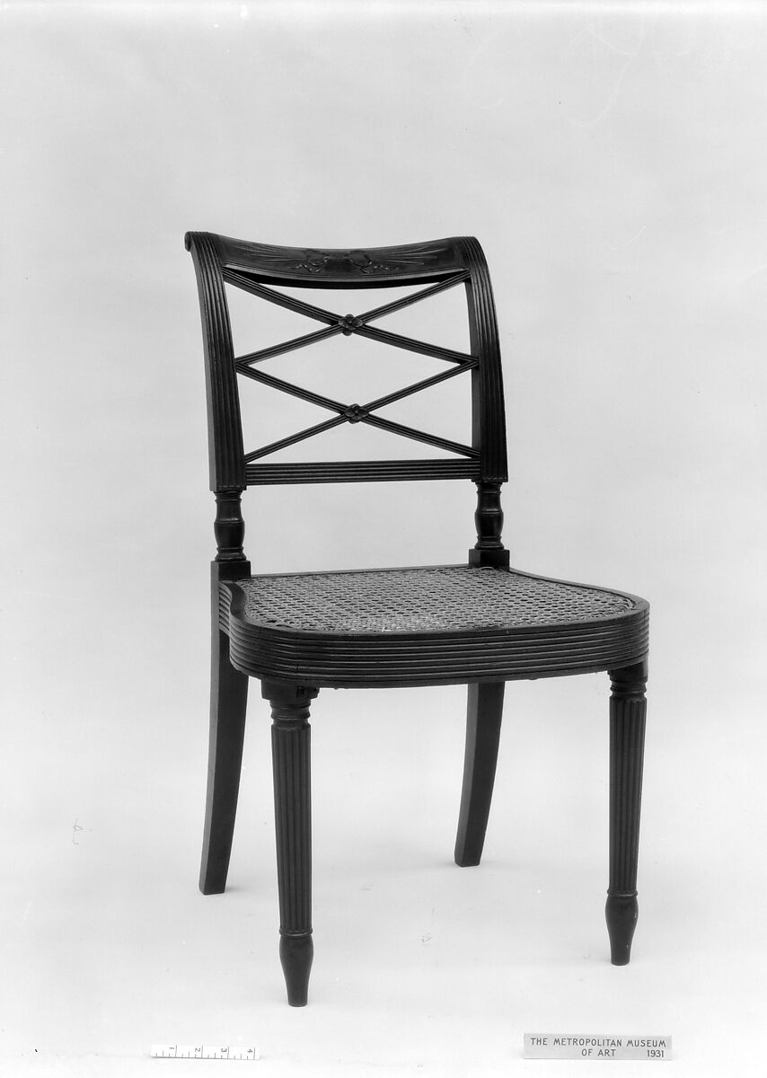This Sheraton-type chair has a thunderbolt carved crest which is similar to two others, 31.44.2 and 36.60.5.