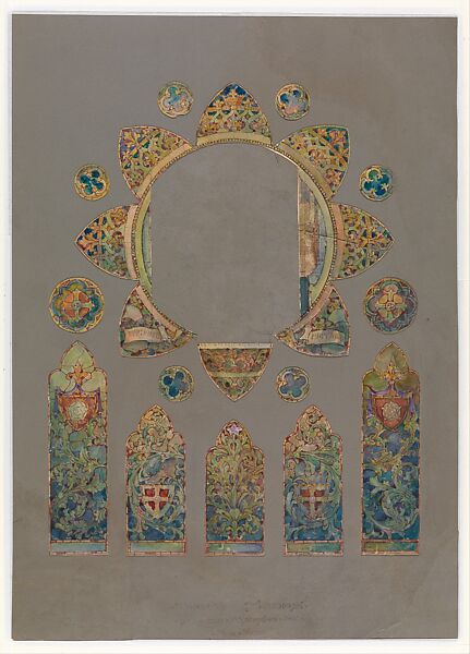 - Title: Design for a rose window with armorial motifs