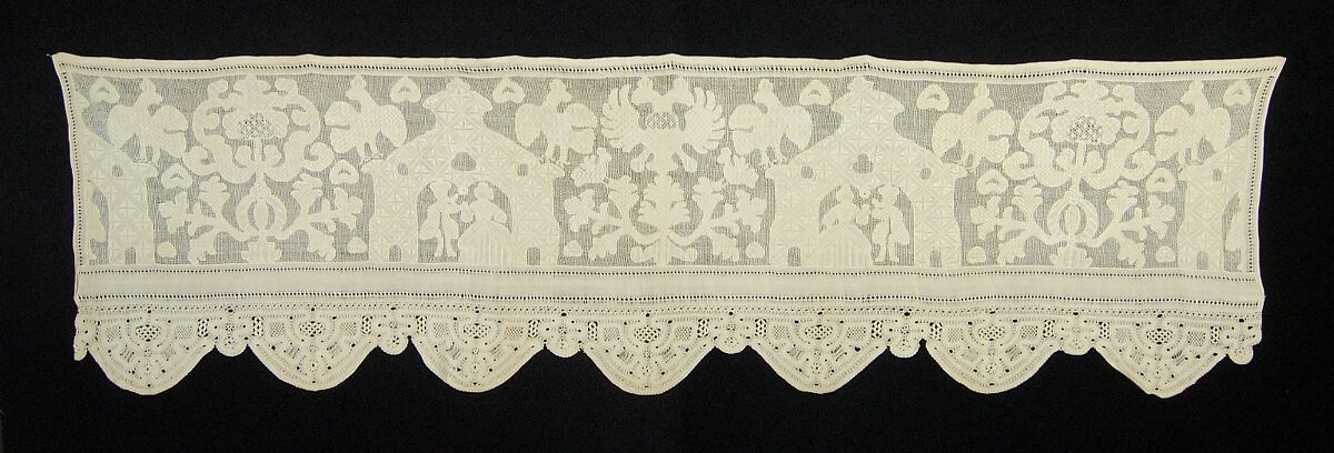 - Medium: Drawnwork, embroidery, bobbin lace, linen