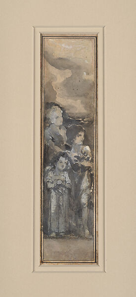 - Medium:Grisaille heightened with white gouache, graphite, pen and ink on paper mounted on board in original double mat