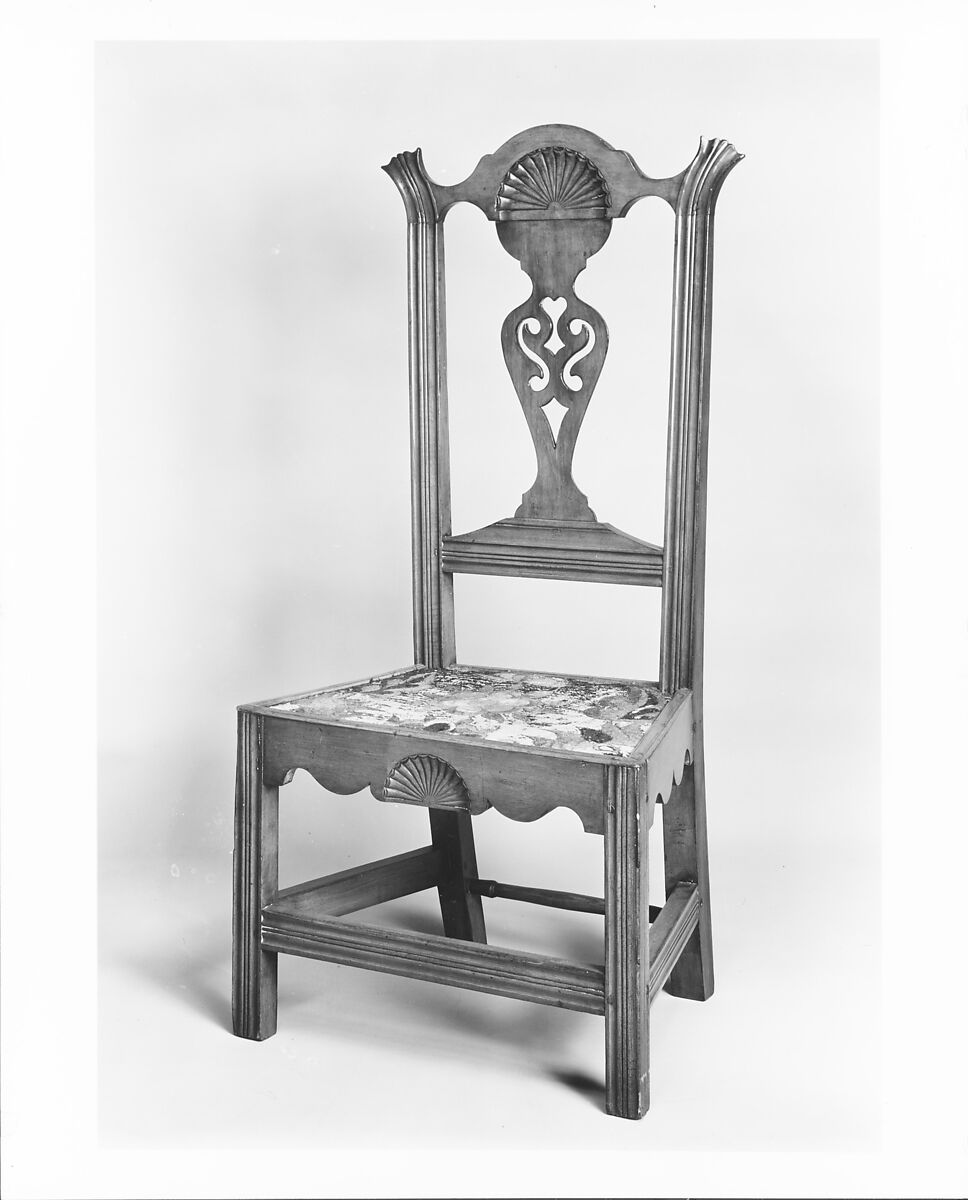 This chair, its companion, and two other virtually identical chairs in other collections, are made in a rural interpretation of the Chippendale style. They are generally attributed to Samuel Dunlap of Salisbury, New Hampshire and his brother, Major John Dunlap, who worked in Goffstown, New Hampshire.
