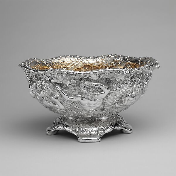 Tritons, seahorses, and seaweed ornament this commanding bowl, whose sophisticated design was likely the work of Charles Osborne, one of Tiffany’s leading designers at the time. The bowl was a gift to Thomas Goddard from his cousins, the children of John Carter Brown of Providence, Rhode Island. The nautical motifs in the ornament are fitting, given that the Goddards and Browns made their fortunes in East Indian shipping ventures.