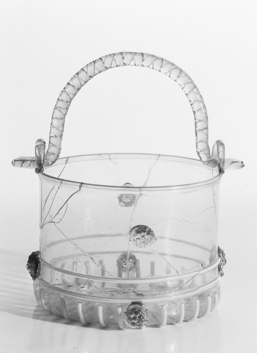 During the Renaissance, Venetian glassmakers, working on the island of Murano, were celebrated across Europe for their fine and sparkling work. Called “cristallo” emulating the clarity of rock crystal, in the hands of the most skilled glassblowers the medium could be delightfully manipulated, variously stretched paper-thin flat, or playfully twisted, or blown into molds with spectacular patterns.