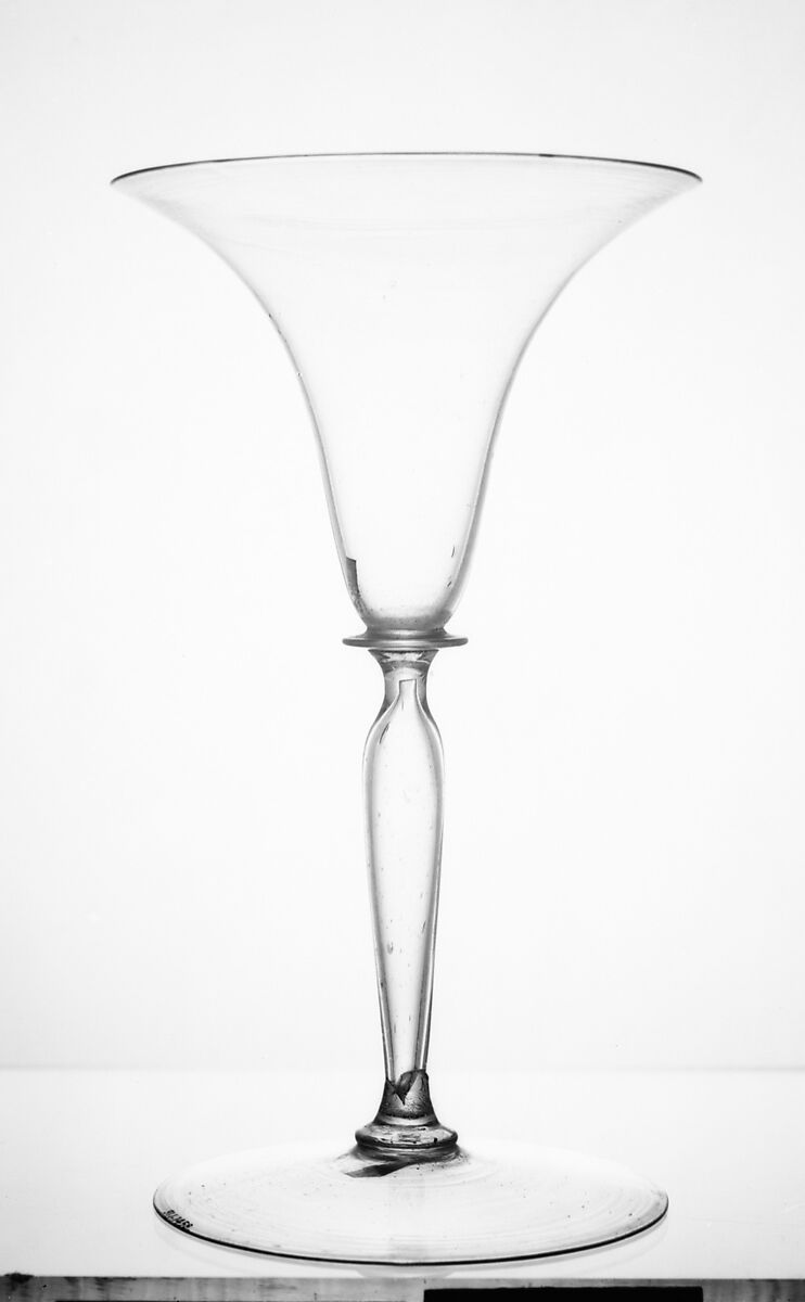 During the Renaissance, Venetian glassmakers, working on the island of Murano, were celebrated across Europe for their fine and sparkling work. Called “cristallo” emulating the clarity of rock crystal, in the hands of the most skilled glassblowers the medium could be delightfully manipulated, variously stretched paper-thin flat, or playfully twisted, or blown into molds with spectacular patterns.