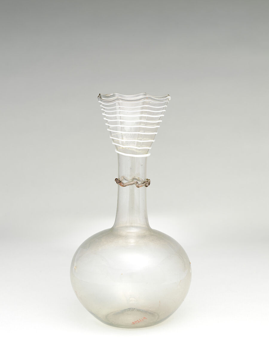 During the Renaissance, Venetian glassmakers, working on the island of Murano, were celebrated across Europe for their fine and sparkling work. Called “cristallo” emulating the clarity of rock crystal, in the hands of the most skilled glassblowers the medium could be delightfully manipulated, variously stretched paper-thin flat, or playfully twisted, or blown into molds with spectacular patterns.