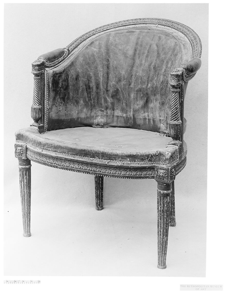 - Medium:Carved and painted beechwood, upholstered in green morocco
