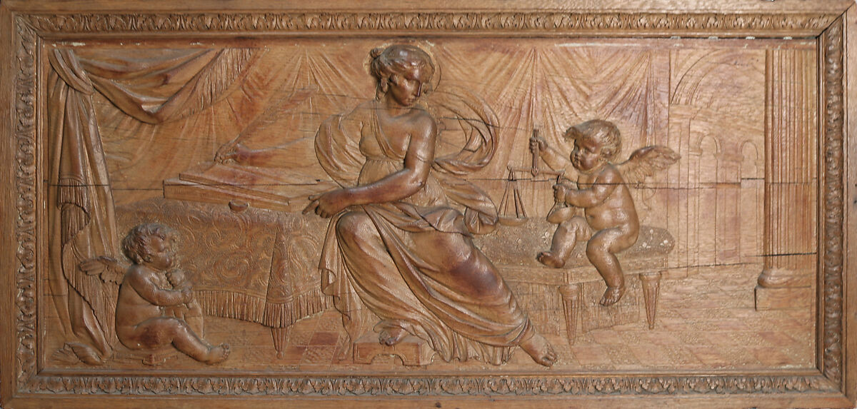 - Title: Overdoor panel with allegory of Justice (one of a pair)