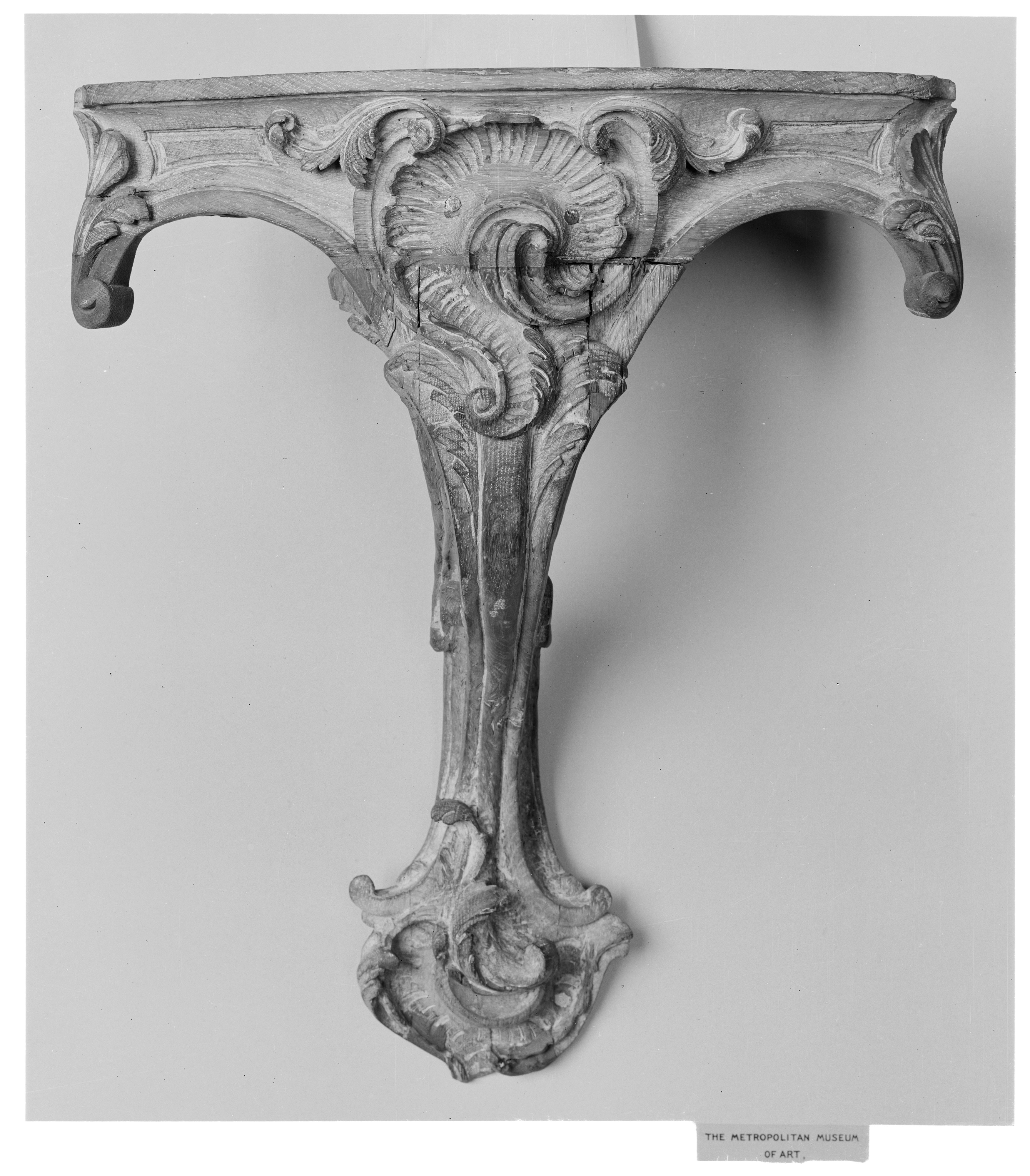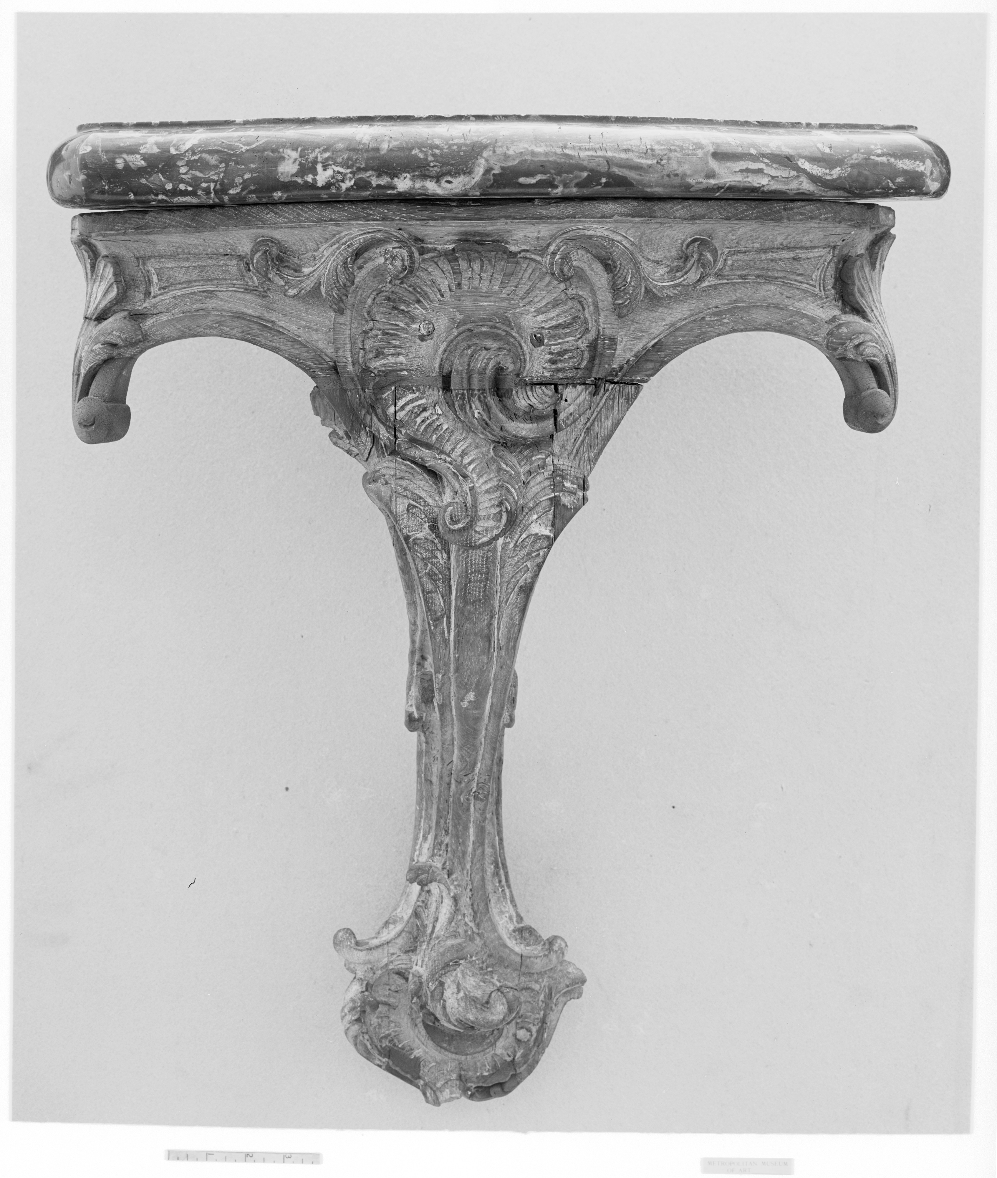 Corner console, Carved and stripped wood; marble, French
