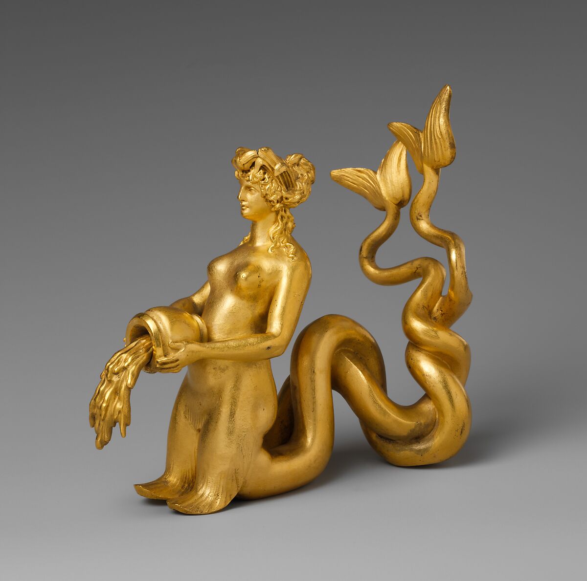 Presumably intended to represent a river nymph, the mermaid holds a vase with streaming water.