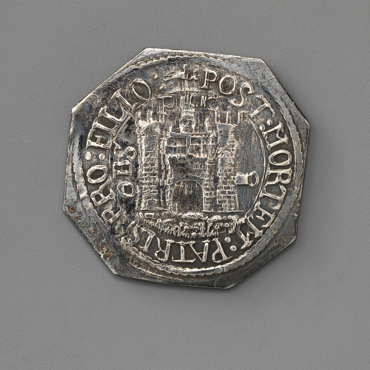 As a vehicle of political propaganda, coins usually have a realistic depiction of the sovereign. However, as in the case of the emergency coinage made when towns were under siege, crudely made examples, such as the one from the Royalist city of Pontefract, were struck during the English Civil War.
