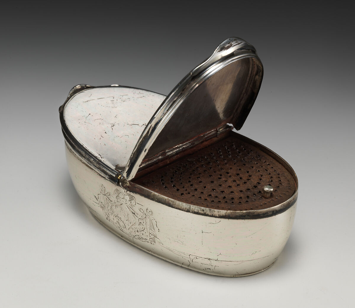 Nutmeg or spice box with arms of Mary Lady Hervey of Ickworth